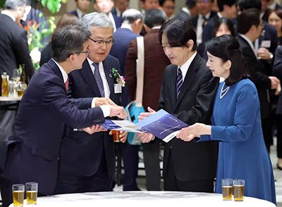 明治記念館(東京都港区)で7日、第34回「地球環境大賞」授賞式が開催され、式に続き行われたレセプションには秋篠宮ご夫妻が臨席された。